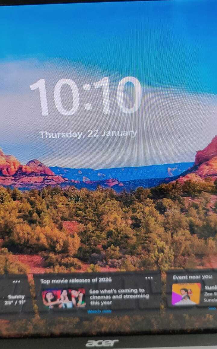 I finished my tea and walked in to start the day’s work. I switched on my laptop. And as the morning light that had bathed the Aravalli hills outside filtered into the room Arizona’s rugged terrain flooded the screen! Out of nowhere. In the corner of the laptop it even mentioned a detail about Sedona. I registered a “goose bump moment.” Is the laptop into mind reading? Of all the images that could randomly appear, this one? I took a screenshot of the postcard you sent. It was 10:10 and later I was told this is a magical number for those who work on numbers. A friend informed me that seeing 10:10 on the clock is often given symbolic or spiritual meaning specially in numerology and “angel number” traditions. I have not dabbled in either so I would not know but it was amazing to learn of this.
